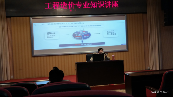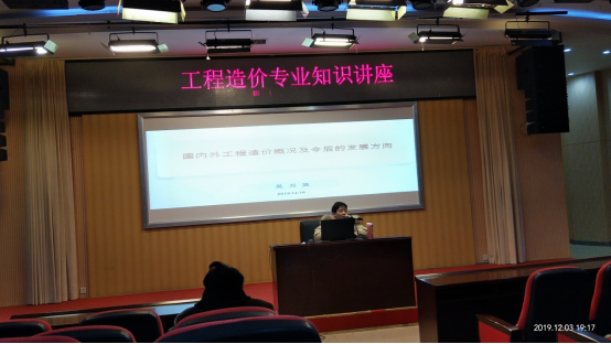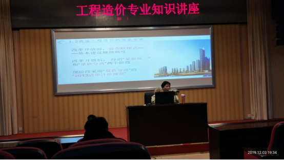 再寒冷的夜晚也阻挡不了我们去图书馆的决心。于2019年12月3日晚间19:00,由吴万英老师主讲的“工程造价专业知识讲座”在图书馆二楼报告厅如期举行。