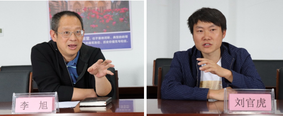 图2专业群负责人李旭、项目负责人刘官虎老师向专家介绍基本情况