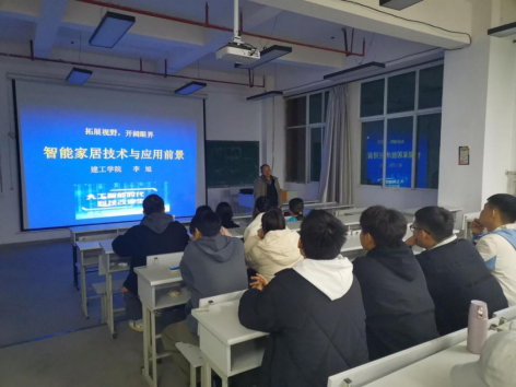 为丰富我校学生课余生活、拓展学生视野,培育和提高学生以“工匠精神”为核心的职业素养,11月13日晚在D206阶梯教室,建筑工程学院李旭老师面向学生举办题为《智能家居技术与应用前景》知识讲座,共有100余名学生参加和聆听了李旭老师生动活泼、深入浅出和内容精彩的讲座,如图1为建工学院李旭老师举办以“拓展视野、开阔眼界”为主题的知识讲座现场。