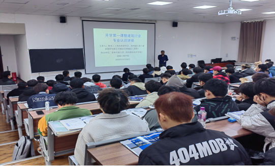 本次专家讲座主要从建筑工程技术为什么学、如何学以及学了做什么三个方面展开。讲座中,陈亮首先向同学们介绍了建筑工程技术在实际工作中需要掌握的专业技能和理论知识。随后,陈亮告诫同学们,梦想更需要以汗水浇筑,在大学不仅要学会专业知识,养成良好的习惯,更要有明确的奋斗目标,具备吃苦耐劳的职业精神。最后,陈亮结合目前贵州建筑行业的现状,鼓励同学们要对自己所学专业有信心,强调“是金子在哪里都会发光”。