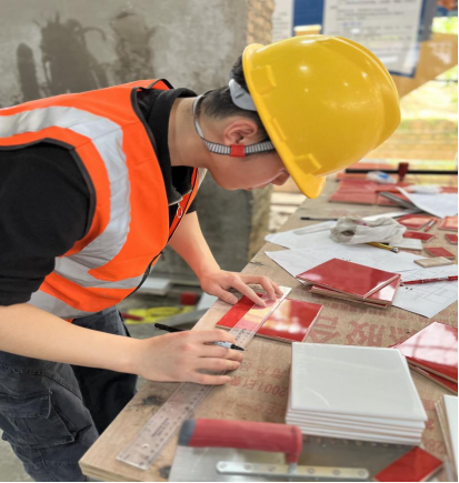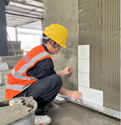 比赛过程中,参赛选手们充分展现出扎实的专业技能和良好的职业素养。在砌筑赛项里,选手们手法娴熟,精确地控制着每一块砖的位置与灰缝厚度,动作流畅迅速,迅速搭建起稳固且美观的墙体结构,展现出高超的技艺水准。瓷砖贴面赛项同样精彩,选手们仔细测量、精准切割,将瓷砖平整且美观地铺贴在指定区域,认真比赛的态度充分阐述了什么是工匠精神。