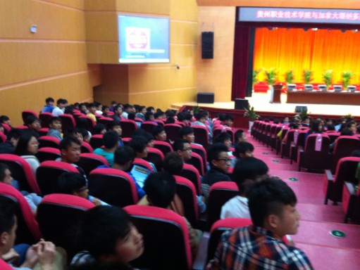 2012年4月22日下午2点40分,工程系学生共190人参加此次推荐会,会场上同学们认真聆听了加拿大堪纳多应用文理学院乔治院长对堪纳多学校的介绍,观看了堪纳多应用文理学院的介绍宣传片,并对 “留学+工作”积极提问。