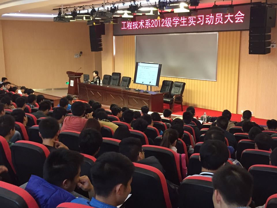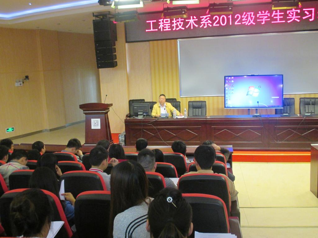 10月28日下午,工程技术系2012级学生实习动员大会在图书馆二楼学术报告厅召开。工程技术系党总支书记周吉萍、主任韩跃武、各专业实习指导老师、辅导员出席,2012级各专业400余名实习学生参加。大会由团总支副书记陈娜主持。