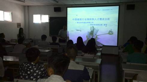 2014年9月25日下午,广联达软件股份有限公司教育培训事业部代表谢军老师应邀到工程技术系,在多媒体教室为工程系14级造价专业全体同学举行了“中国建筑行业现状和人才需求分析”专题讲座。