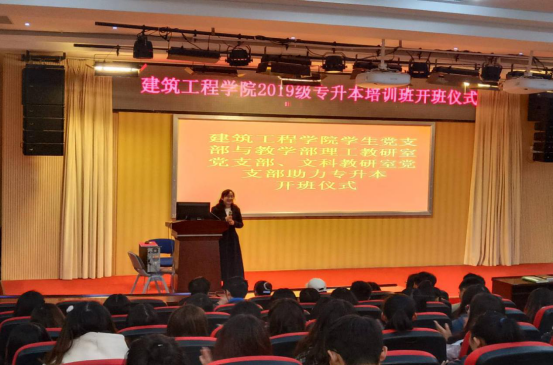 为提升我校高职学生专升本通过率,建筑工程学院学生党支部与教学部理工教研室党支部、文科教研室党支部联合助力建筑工程学院2019级学生备考专升本。2020年11月6日中午在图书馆二楼报告厅举行开班仪式,建筑工程学院副院长荣光老师、建筑工程学院学生党支部与教学部理工教研室党支部、文科教研室党支部党员代表、专升本学长代表和2019级报名参加专升本的全体同学参加开班仪式。