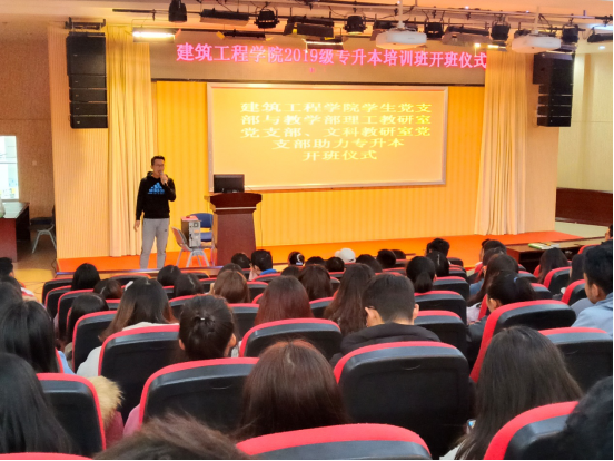 建筑工程学院学生党支部与教学部理工教研室党支部、文科教研室党支部助力专升本开班仪式