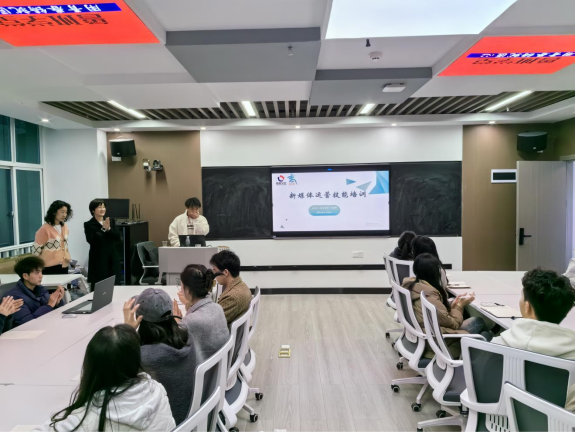 在培训中,王鑫黔现场向同学们展示了公众号文章发布的步骤和技巧,包括如何进行文字编辑和图面排版,如何对布局进行调整、对排版结构进行升华,以及如何在文章中插入音频、视频等。王鑫黔提醒同学们,当文字和图片编辑好后,要不断调整,使得文章更加具有丰富性。