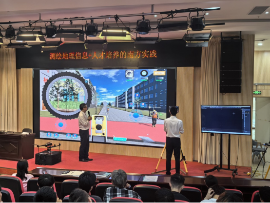 会后,袁家秀一行技术人员在图书馆二楼报告厅为我校工程测量技术专业教师及学生带来了题为“测绘地理信息中元宇宙技术应用”的专题讲座,让学生们亲身感受了元宇宙技术在教学中的应用效果,受益匪浅。