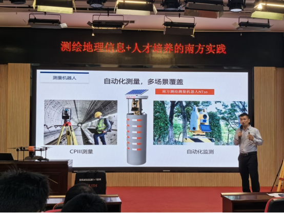 为深入推进校企合作,提高工程测量技术专业人才培养质量,2024年5月14日下午,广州南方测绘科技股份有限公司渝贵分公司总经理袁家秀、集团教育事业部技术经理寻林辉、教育事业部经理蒋文一行莅临建筑工程学院。建筑工程党委书记林瑶、副书记荣光、副院长周仕来及测量教研室全体老师参加了交流座谈,座谈会在慎行楼党员活动室举行。座谈会结束后在图书馆报告厅为学生开展“测绘地理信息中元宇宙技术应用”专题讲座。