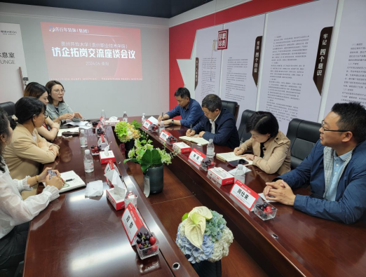 2024年5月15日上午,校党委委员林长松副校长带领我院领导班子及教师等一行7人赴贵州喜百年装饰工程有限公司访企拓岗,并就校企合作、产教融合、学生实习实训等内容进行了交流座谈。