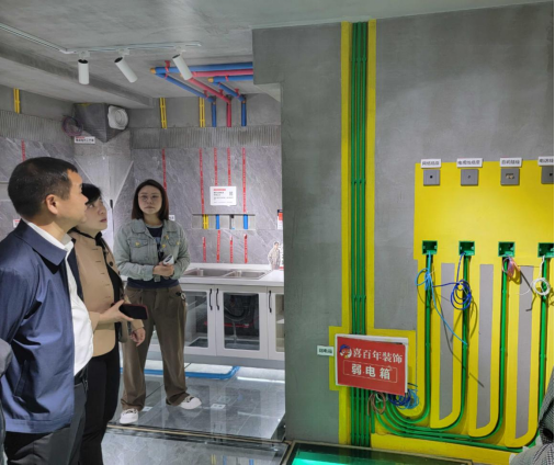 会后,喜百年集团人事总经理吴侨带领我校领导及教师一行参观了企业总部的样板间及装修工艺等工法展示厅,对我院如何建好室内设计实训室起到了很好的学习示范作用。喜百年的发展历程、管理理念、技术创新等企业文化都向我们展示了企业积极向上奋力发展的良好氛围。