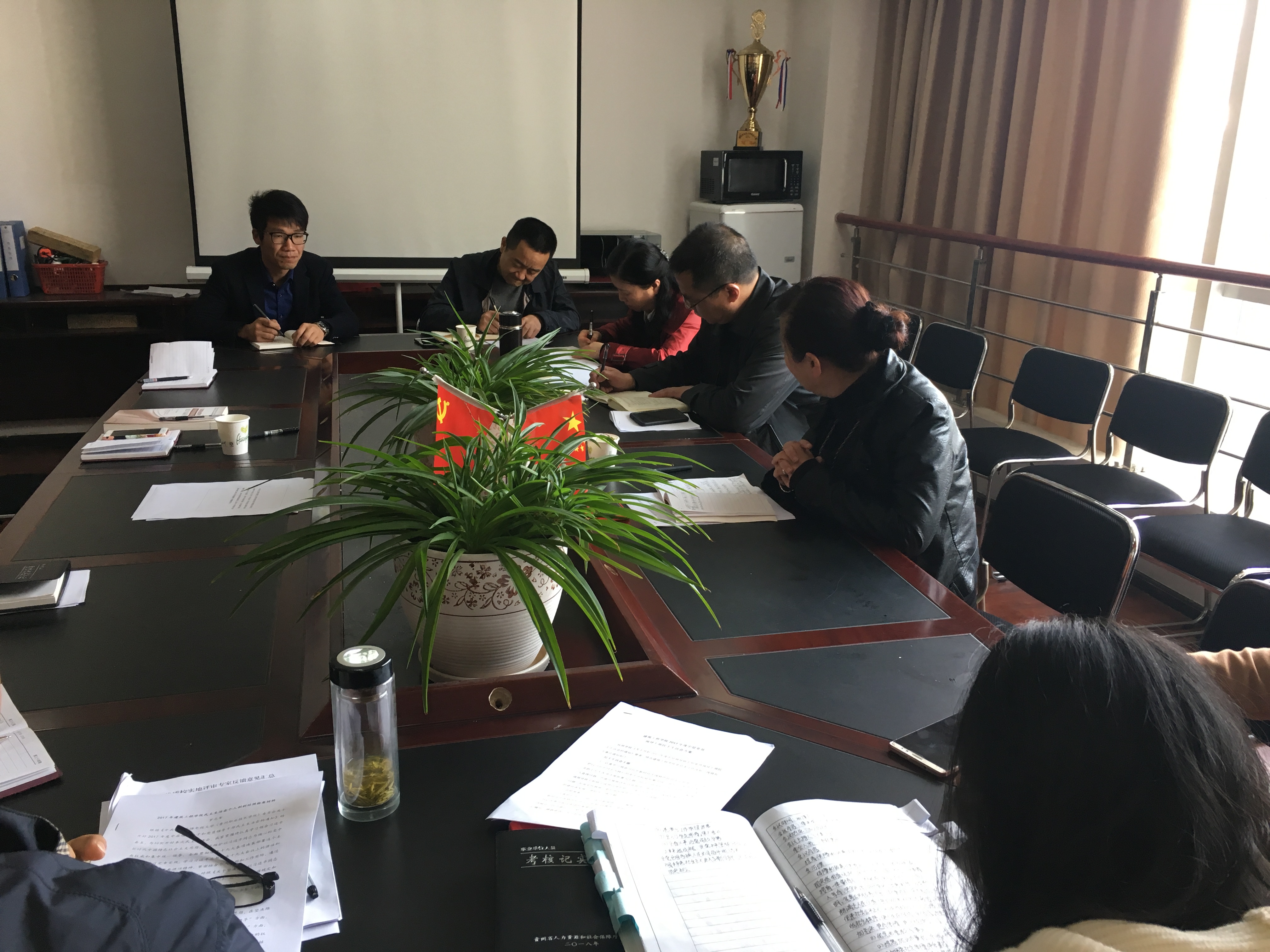 按照中共贵州省纪委机关、贵州省委组织部的黔组通〔2017〕127号文件、省工委和学校《关于开好2017年度中层领导班子和党员领导干部民主生活会的通知》要求,建筑工程学院党总支于2018年3月15日下午2:00召开中层领导干部民主生活会,会议由建筑工程学院党总支书记、院长胡群主持,班子成员参会,学校副校长龚辉,纪检委副书记、主任李光和到会指导。