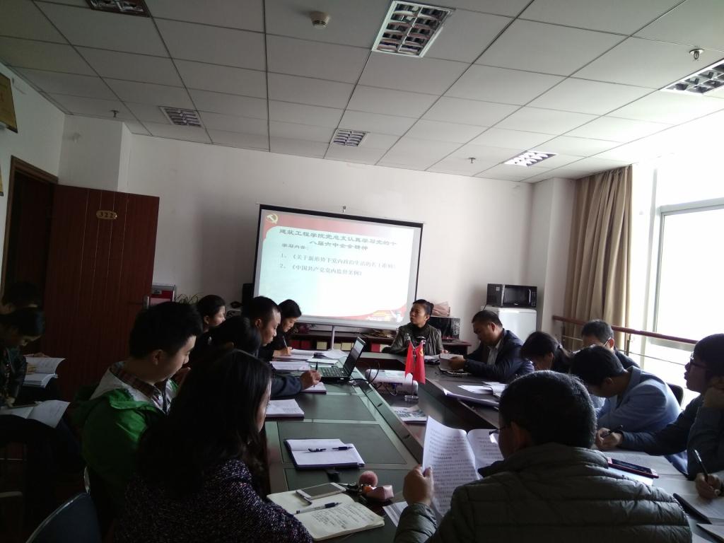 为深入贯彻党的十八届六中全会精神,进一步加强党总支的学习意识,2016年11月22日建筑工程学院党总支在322会议室认真组织全体党员学习贯彻党的十八届六中全会精神,会议由党总支副书记侯小玲老师主持。