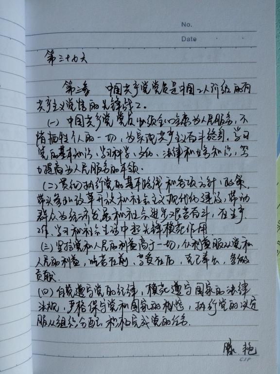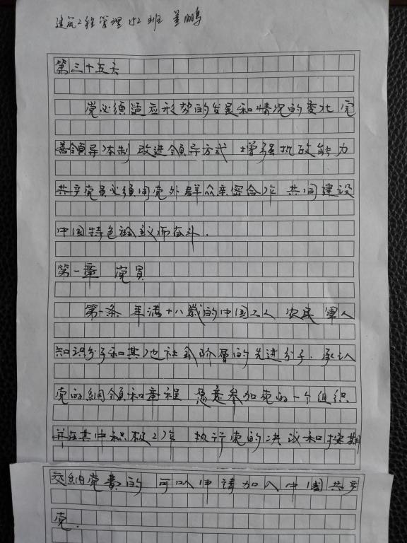 根据学校党委组织部和“两学一做”学习教育协调指导小组的要求,建筑工程学院党总支于2016年5月31日对我学院各党支部所有教师和学生党员的手抄党章进行了检查,现对检查过程中发现的较为优秀的作品进行展示:
