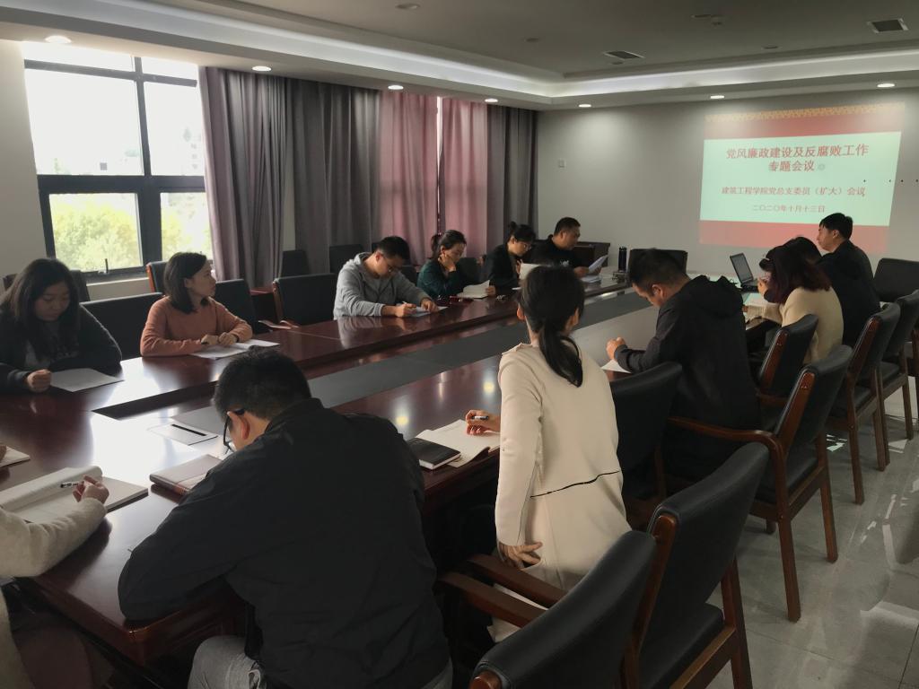 为进一步加强党风廉政建设,切实改进工作作风,10月13日中午,建筑工程学院召开党风廉政建设和反腐败工作专题会议。会议由党总支书记罗之军主持,学院领导、总支委员、科室负责人、教研室主任、党支部书记、全体辅导员参加会议。