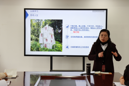 其次,胡群院长根据国发〔2022〕2号文件提出:作为职业学校,我们作为职业教育人,特别是我们学生党支部大部分党员都是辅导员老师,要高质量的培养学生、深入到学生中,了解学生,成为学生的良师益友、参与教育教学改革、关注学生思想,关注学生成长、疫情期间要开展更加丰富多彩的课余生活。