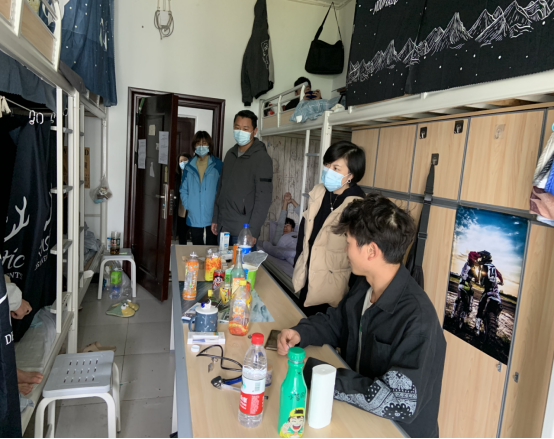 林瑶和周仕来同志带头深入学生寝室和同学们亲切交谈,关心了解他们的学习生活情,叮嘱同学们要严格遵守学校规章制度和疫情防控期间校园管理规定,注意加强个人防护、寝室卫生和安全意识,保持良好的学习生活习惯,顺利完成各项学习任务。