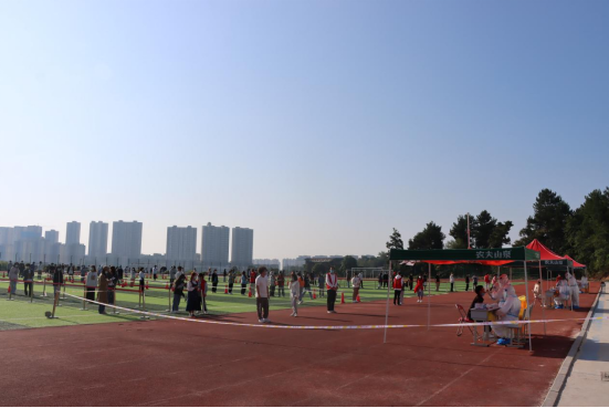 图为建筑工程学院党员先锋队成员在有序组织学生开展核酸检测工作