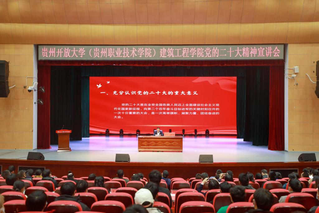 为深入学习宣传贯彻党的二十大精神,把全校教职工生的思想和行动统一到党的二十大精神上来,把智慧和力量凝聚到完成党的二十大确定的各项任务上来,11月22日下午,校党委副书记龚辉在学校大礼堂宣讲党的二十大精神。党委学生工作部部长罗之军、机关党委、宣传统战部党支部、人事处党支部、工会党支部以及建筑工程学院全体教师、学生代表参会。