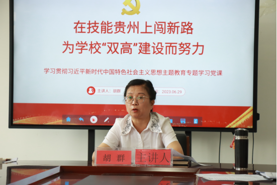 胡群以习近平总书记视察贵州重要讲话精神和对贵州工作的重要指示批示为切入点,带领全体教职工重温了新国发2号文件,指出我们作为教育工作者,要始终围绕立德树人办人民满意的大学的宗旨,为党育人、为国育才,在技能贵州上闯新路。
