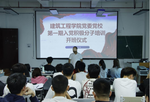 5月19日下午,建筑工程学院党委党校在慎行楼阶梯教室举行第一期入党积极分子开班仪式暨党课第一讲。全体入党积极分子参加开班仪式和党课(第1讲)学习,学生党支部有关党员同志参加开班仪式。学院党委书记罗之军在开班仪式上讲话,党委副书记牛忠江提培训学习要求。开班仪式由学生党支部书记姜海峰主持。