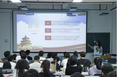 学生党支部党员郭廷廷教师为全体入党积极分子讲授题为“习近平新时代中国特色社会主义思想实现了马克思主义中国化时代化新的飞跃”的党课。