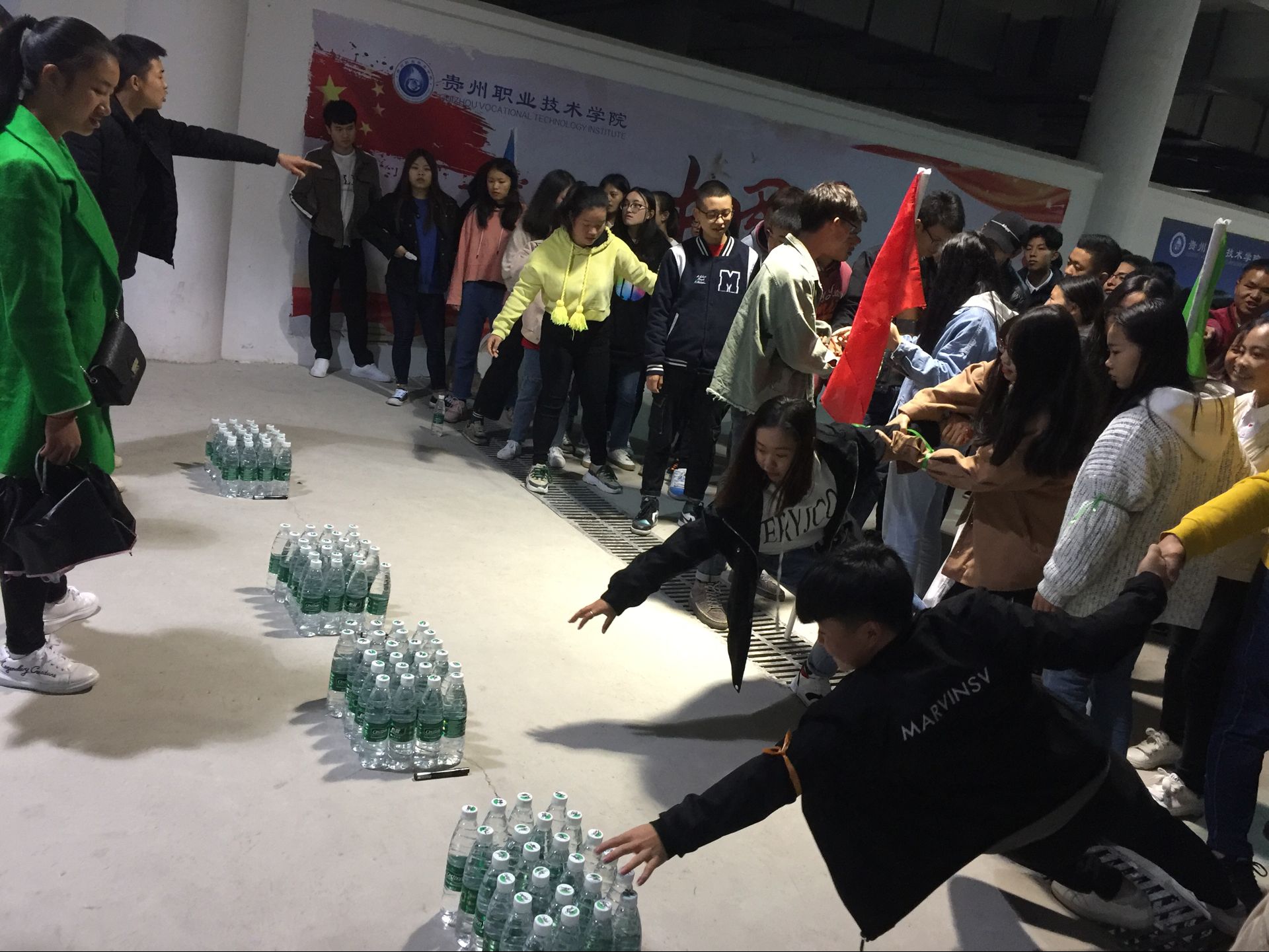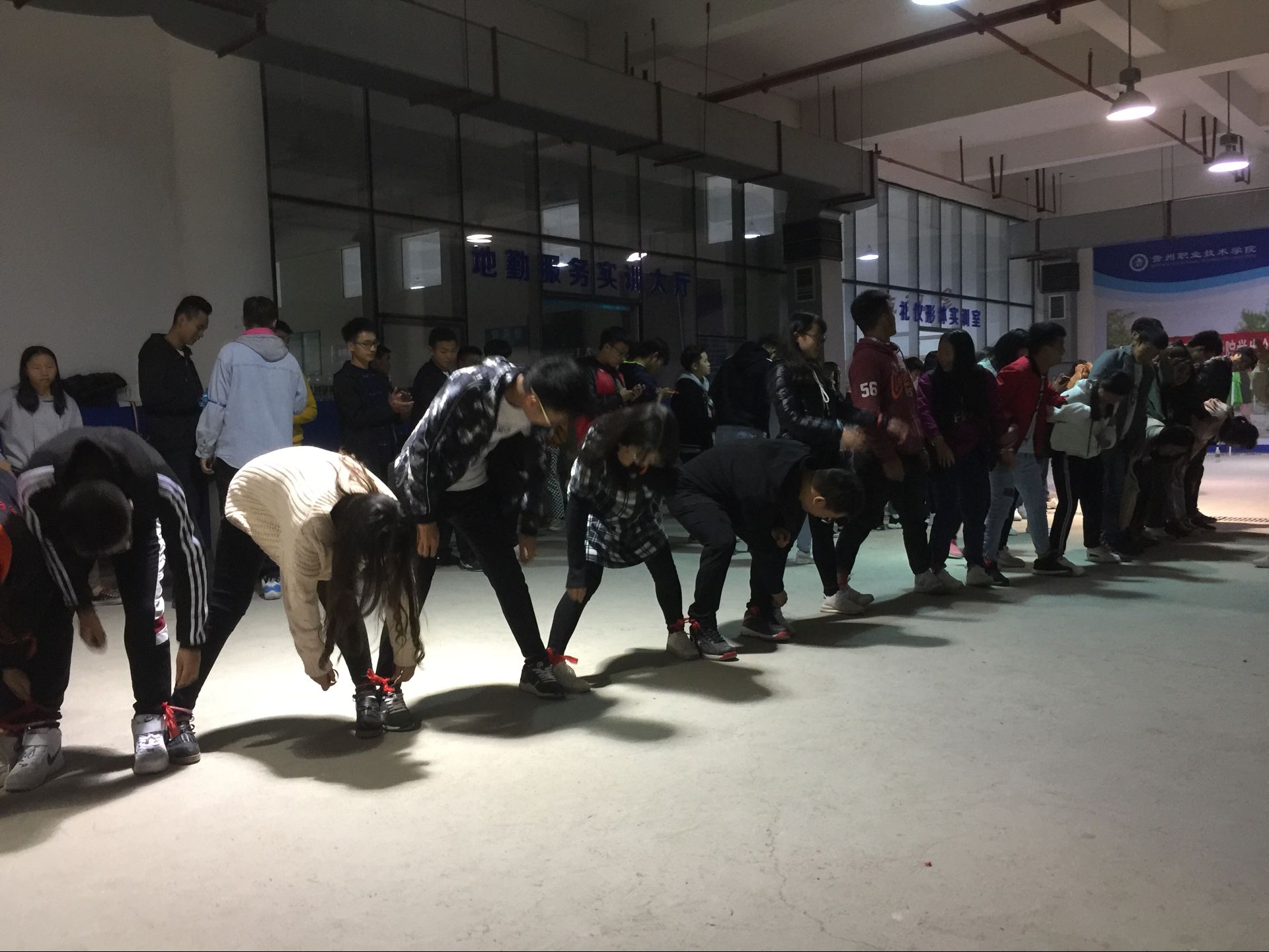 活动起初,主持人介绍了邓福啦老师的到来,其次是李龙教官发言介绍此次素质拓展活动,阐述了“沟通协作,团结拼搏”的目的及意义。素质拓展训练开始,教练通过一些小游戏来和同学们进行互动,营造出一种轻松、愉悦而又充满激情的氛围。接下来,教官把学员分成了四个小组,通过讨论协商,每个小组选出了一名队长并设计出了各自小组的队名、队歌、队标、口号、队形,最后各个小组分别进行了团队的风采展示。