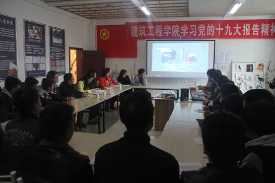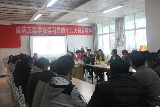 11月23日下午3点,团省委学校部副部长高艳妮来我校开展“感恩·奋进—青春建功新时代”党的十九大精神宣讲主题团日活动,此次活动在敏行楼“贵州侗人古建筑大师工作室”举行,我校团委书记陈鹰老师、建筑工程学院党总支副书记侯晓玲老师、团委副书记李雪芬老师和建工162班全体团员参加了此次活动。活动由该班团支部书记王林林主持。