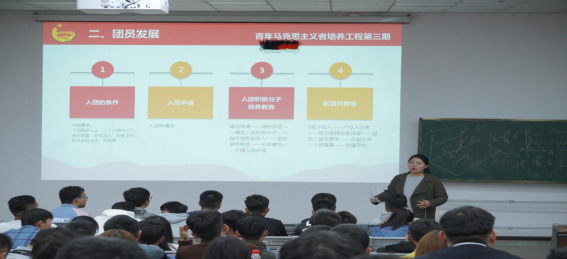 同时她也对青马学员和入团积极分子提出几点希望:一是坚定理想信念,做马克思主义忠实信仰者。要认真研读马克思主义经典著作,掌握马克思主义的立场、观点和方法,增强对当代各种社会思潮的辨析、甄别能力,进一步坚定跟党走中国特色社会主义道路的理想信念。二是坚持学研结合,做马克思主义学习研究者。要坚持学习马克思主义理论,学习党的路线方针政策和国家法律法规,要结合工作学习几方面的知识,把坚持马克思主义和发展马克思主义统一起来。三是积极投身实践,做马克思主义模范实践者。要利用好此次培训精心设计的团日活动宣讲环节,在自我发展、自我成长、自我提高的同时,充分发挥政治骨干和模范带头作用。