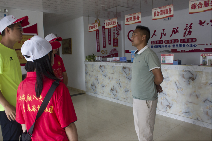实践队首先去到营华村村委会去了解情况。通过村委会负责人介绍,“恒大幸福十村”易地扶贫搬迁安置点共搬迁39户179人,涉及辖区内6个村,搬迁农户100%为建档立卡的贫困户。通过对迁入人口劳动力进行技能培训,劳务输出,发展种、养殖业及第三产业的方式,拓展致富门路。