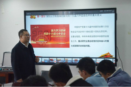 12月9日中午,学院党总支书记罗之军在319会议室为学院学生干部宣讲党的十九届六中全会精神,罗之军以“在新的赶考路上创造新的辉煌”为题,从党的十九届六中全会召开的重大意义、《中共中央关于党的百年奋斗重大成就和历史经验的决议》的主要内容、百年起点建设多彩贵州新未来和青年大学生如何学习贯彻党的十九届六中全会精神四个方面对同学们进行宣讲,让同学们对十九届六中全会精神有了更加全面的认识,为帮助同学们学习贯彻好党的十九届六中全会精神起到了一定积极作用,同时也希望同学们,传承红色基因,弘扬伟大建党精神,在乡村振兴、建设网络强国等新的伟大事业中经受凄风楚雨的历练,增强干事创业的本领、练就行家里手的本事,挥洒汗水,不负韶华,为实现第二个百年奋斗目标作出自己应有的贡献。