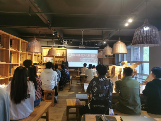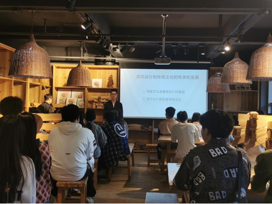 活动开展中,团总支书记、工作室成员董珈豪以专题形式向学生分享建筑设计和传统文化的传承和发展,引导建筑类专业学生正确认识建筑设计的发展与传统文化的传承之间的关系,并积极从传统文化中汲取创作设计理念,将传统文化在建筑及其设计中得以体现和传承,进而促进传统文化的发展。