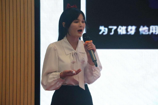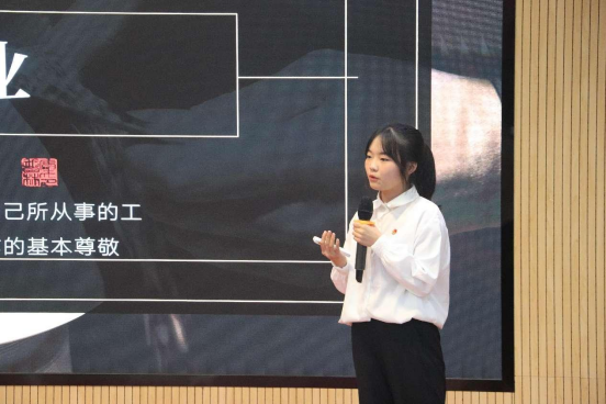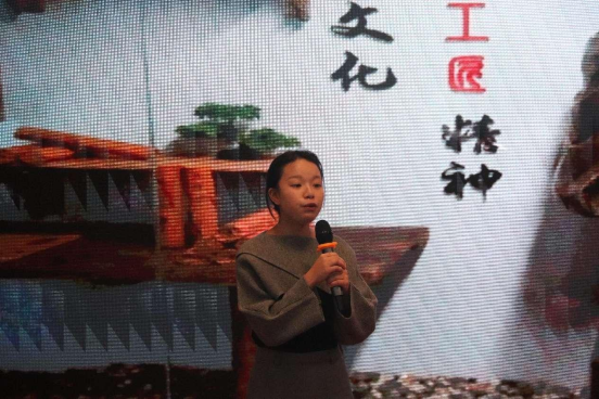 图为艺术与设计学院的同学们为大家带来了朗诵表演《工匠礼赞》,他们用充满激情的朗诵,生动地赞美了千年来中国匠人传承的工匠精神。