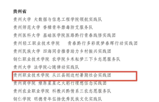 近日,共青团中央发布《2023年全国大中专学生志愿者暑期文化科技卫生“三下乡”社会实践活动总结通报结果公示》,贵州职业技术学院建筑工程学院“从江县刚边村暑期社会实践团”喜获全国“三下乡”优秀团队。