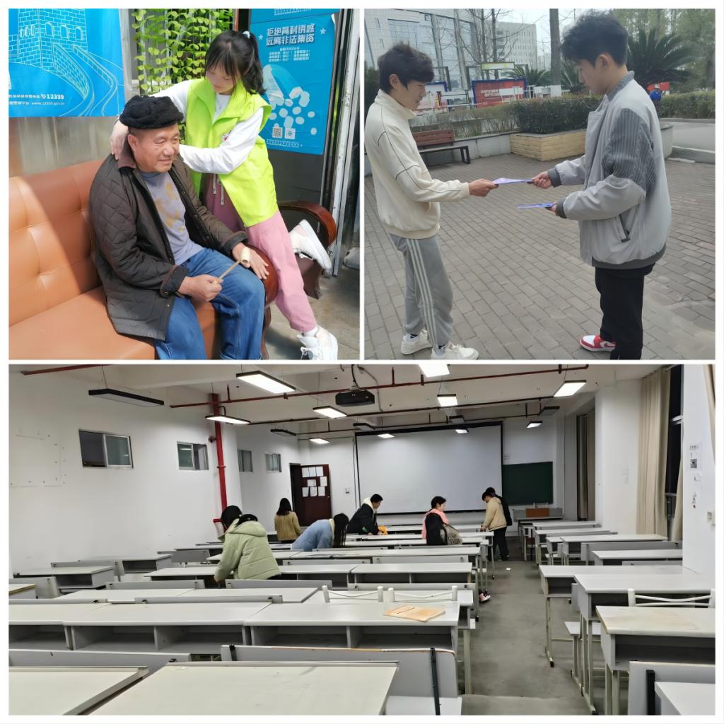 学雷锋,各个班级的“鲁小班”志愿者们在行动。工程测量技术232班的同学们前往敬老院,与老人亲切交谈、按摩肩膀,开展爱老敬老的志愿服务活动。建筑室内设计231班团支部则发起了反诈骗宣传活动,通过发放资料和普及防骗知识,提升了师生对电信网络诈骗的防范意识。建设工程管理231班和232班的学生们自发组织了校园清洁活动,彻底清扫慎行楼二楼教室,不仅改善了校园环境,也体现了他们践行雷锋精神的决心。
