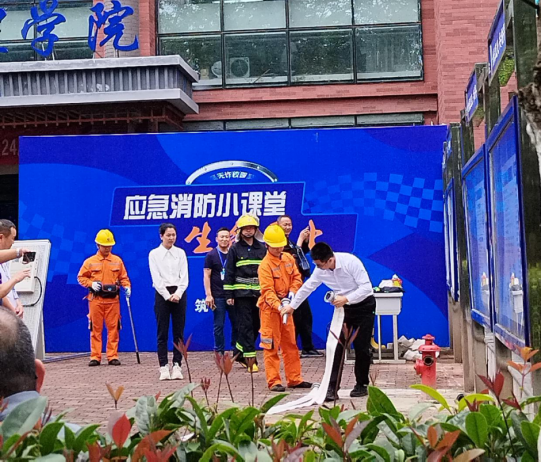 随后,教师代表黄鹭和贵州省职业技能大赛省赛一等奖获奖选手结合我院建筑专业设置和人才培养方案开展“平安校园,智慧消防”小课堂,向参会嘉宾展示“消防灭火系统安装与调试”实训平台的其中一个模块----火灾自动报警联动系统。课堂中,还穿插室外消火栓的使用演示,参会嘉宾积极参与操作体验,现场气氛活跃。